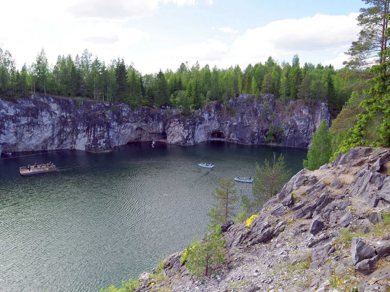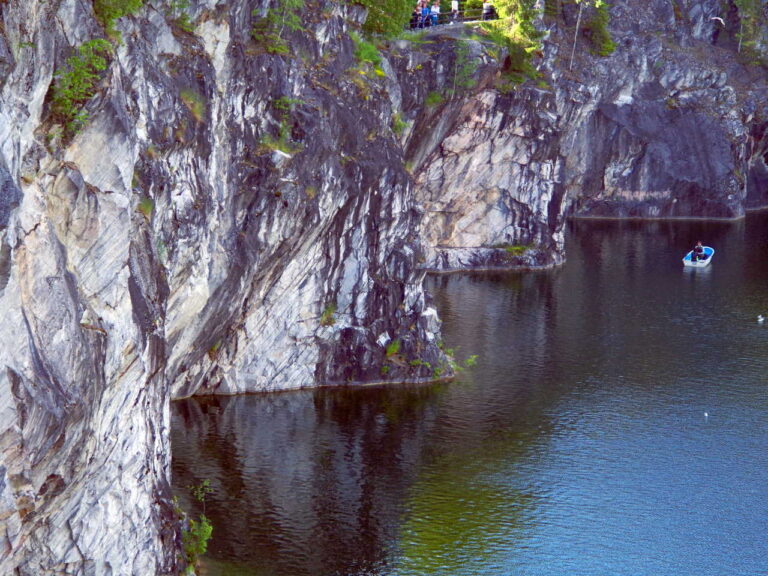 - Обзорная экскурсия по Горному парку, в ходе которой ребята узнают, как люди в старину, без всяких современных машин, добывали этот прочный и красивый камень, узнают, какие знаменитые дворцы и соборы украшены карельским камнем. А в конце нашего путешествия вас ждёт настоящий восторг! Представь себе гигантскую каменную чашу, наполненную изумрудной водой, а вокруг — отвесные белые стены. Это и есть знаменитый Мраморный карьер — главная жемчужина этого места;